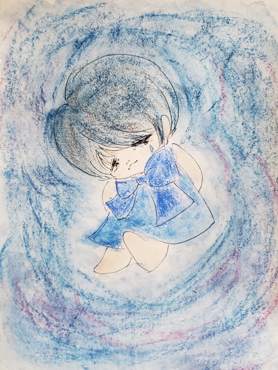 先に描いた怒りの子以外の私の中に住む子ら、悲しみの子と、元気な子、穏やかな子を描いてみた。